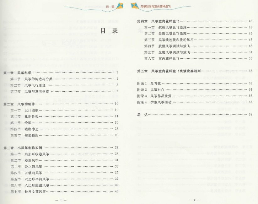 风筝物理学、风、绳结技巧、工具、技术、详细的风筝图解;室内风筝章节、比赛;