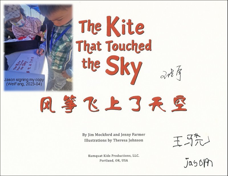 toddlers with kites. English-Chinese parallell texts; small