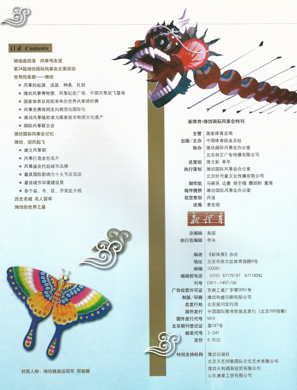 潍坊国际风筝会 WeiFang GuoJi FengZheng Hui (2007-04) 潍坊国际风筝会特刊 Sonderveroeffentlichung zum Internationalen Drachenfestival Weifang Weifang International Kite Festival Special Publication Internationales Drachenfestival WeiFang / WeiFang International Kite Festival |