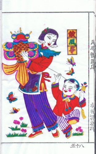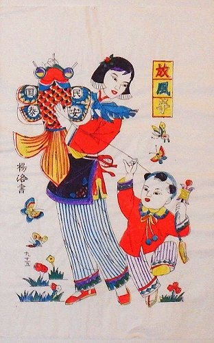 YangJiaBu 2007 ca. 36.0 x 45.5 cm Text: "Fang FengZheng" ('Drachensteigen') links: "Heng XingYi Dian" (Herausgeber) auf Drachen: "MinGuo-AnChun" ('Friede dem Volk') |