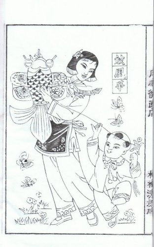 NianShuXuan TePin" 2003 ca. 25.3 X 16.9 cm Text: "Fang FengZheng" ('Drachensteigen') auf Drachen: "MinGuo-AnChun" ('Friede dem Volk') |
