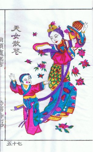 NianShuXuan TePin" 2007 (58. Auflage?) ca. 25.3 X 16.9 cm Text: "XianNv SanXiang" ('Die Himmlische Frau sorgt fuer Nahrung' / 'The Heavenly Maid frovides Wine and Dine' ) |