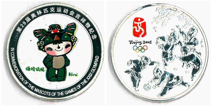 | 1元2008年 (非)流通投标硬币(NCLT)、纪念币 奥运吉祥物妮妮击剑 (头顶北 京燕的吉祥物妮妮) 刻字 面值: 1元,第29届奥委会 返回:中华人民共和国,2008年 北京2008 |