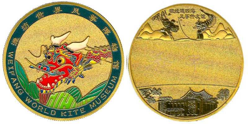 Drachen Museum 2025 Schmetterlings Drachen Kupfer, Gold-plattiert, 30g, Durchmesser 45mm WeiFang Kite Museum 2025 Butterfly Kite Copper, Gold-plated 30g, 45mm Diameter 潍坊风筝博物 馆2025 蝴蝶风筝 铜,镀金 30 克,直径 45 毫米 |