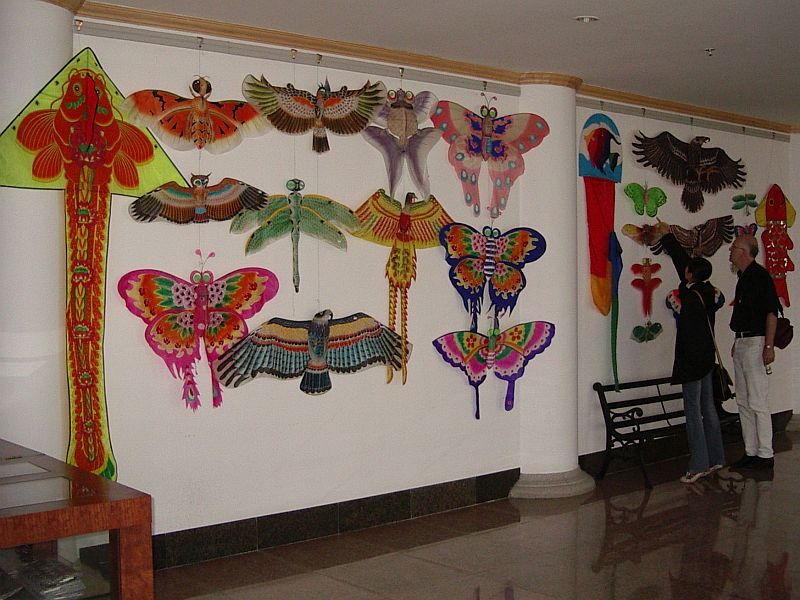 Museums and other kite-related institutions Weifang Kite Museum WeiFang City Museum WeiFang's kites have striking artistic peculiarities. The themes and forms of the kites are distinctive, unique and extremely versatile. For example, birds and other animals, flowers, fishes, butterflies and other insects, marine animals, but also topics from folk mythology and religion, folk tales, fairy tales and legends are presented. These themes are reflected in the painting, but also in the actual shape of the kite itself. "The Four Skills of Kite Building" are deepened on a separate page. Chinese kites can be divided into four categories: