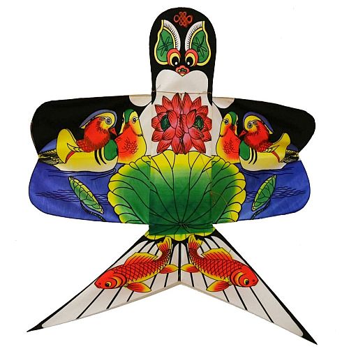 Schwalbendrachen mit Mandarin-Entenpaar, Lotos und einem Goldfisch-Paerchen (die Bildsprache ist ueber die Links erfahrbar) Swallow Kite with Mandarin-Duck couple, Lotos, and a Pair of Gold Fishes (appeal to imagery through appropriate links!)