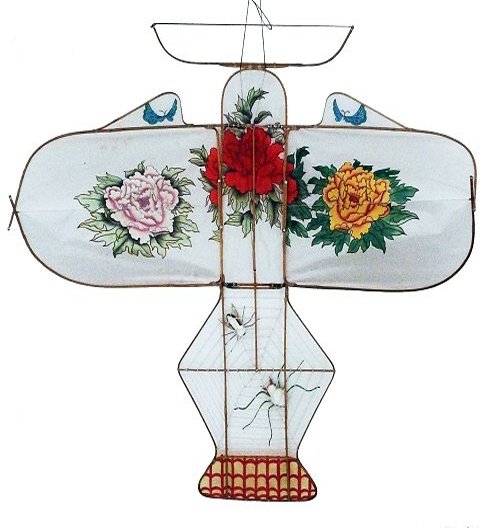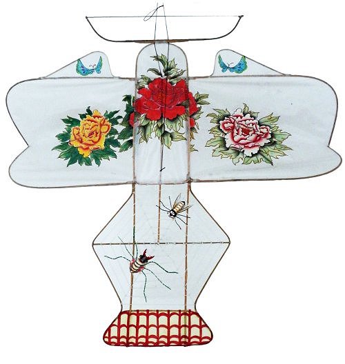 花束 (HuaShu) Blumen-Bukett (Pfingstrosen) Blumen-Bukett mit Spinne und Biene. Der Summer am oberen Drachen-Ende imitiert das Brummen der im Spinnennetz gefangenen Biene Bunch of Flowers (Peonia Bouquet) Bunch of Flowers with Spider and Bee. The Hummer on top of the kite imitates the sound of the caught bee 束鲜花(牡 丹花束) 束花与蜘蛛和蜜蜂在蛛网上。风筝上的鸣器模仿捕获的蜜蜂的声音 |