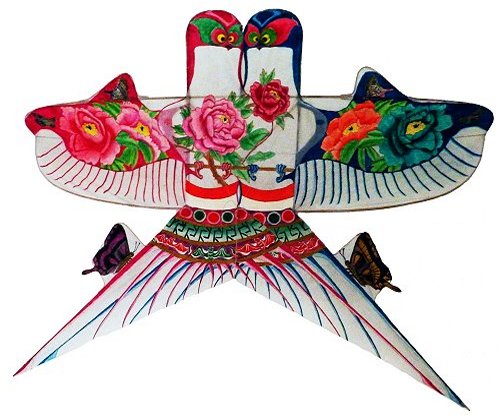 Bambus (TianJin) Double Swallow (Wedding-Swallow Kite) Paper, Bamboo (TianJin) Unlike most traditional kites, kites from Tianjin are sometimes made of paper. Double swallow kites with dual frames are rarely manufactured today. In addition, and as a special feature, this swallow kite has a three-point brildle.