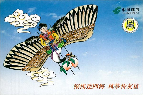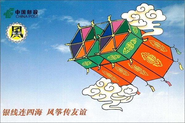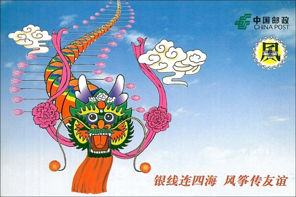 | WeiFang DrachenPostkarten (1998) WeiFang Kite Postcards WeiFang FengZheng MingXinPian ![]() Die silberne Drachenleine verbindet die sieben Meere - Drachen vermitteln Freundschaft The Silver Line Connects the Seven Seas - Kites Impart Friendship |