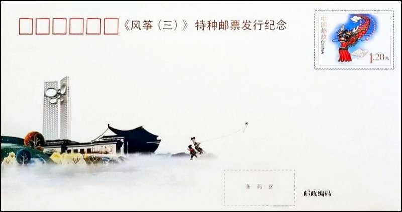 - 除了这张1.20元的邮政 文具外,还有一 套其他12个潍坊图案的景点。