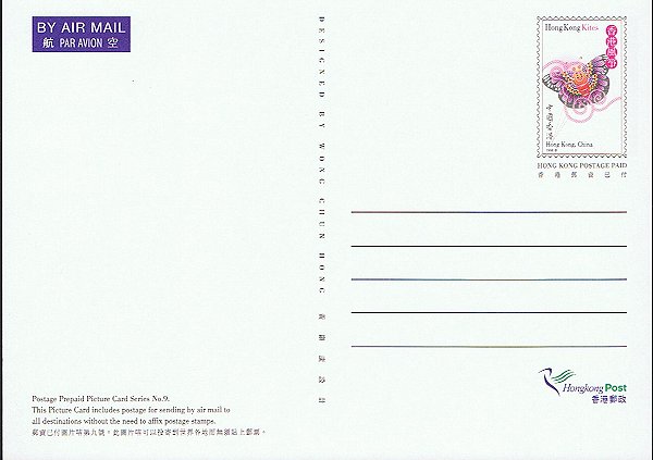 Die eingedruckten Drachenmarken tragen keine bezifferte Nominale, sondern jeweils die Vorausfrankatur "postage Paid" The imprinted kitestamp does not contain a specified denomination, but the postage "Postage Paid" |