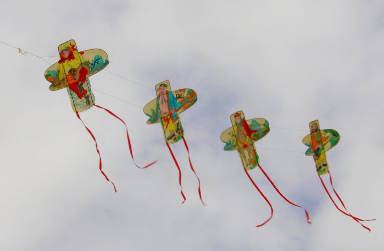 The frame of a butterfly kite is the East Asian symbol for a kite, just as the diamond-shaped kite is the symbol for kites in the West. On many streets in WeiFang, the Kite Capital of the World, you can find street lamps decorated with the motif of a butterfly kite's frame, which are even illuminated at night. You can even find taxis bearing this kite symbol, and the International Kite Federation (IKF) also has this kite symbol as its logo.